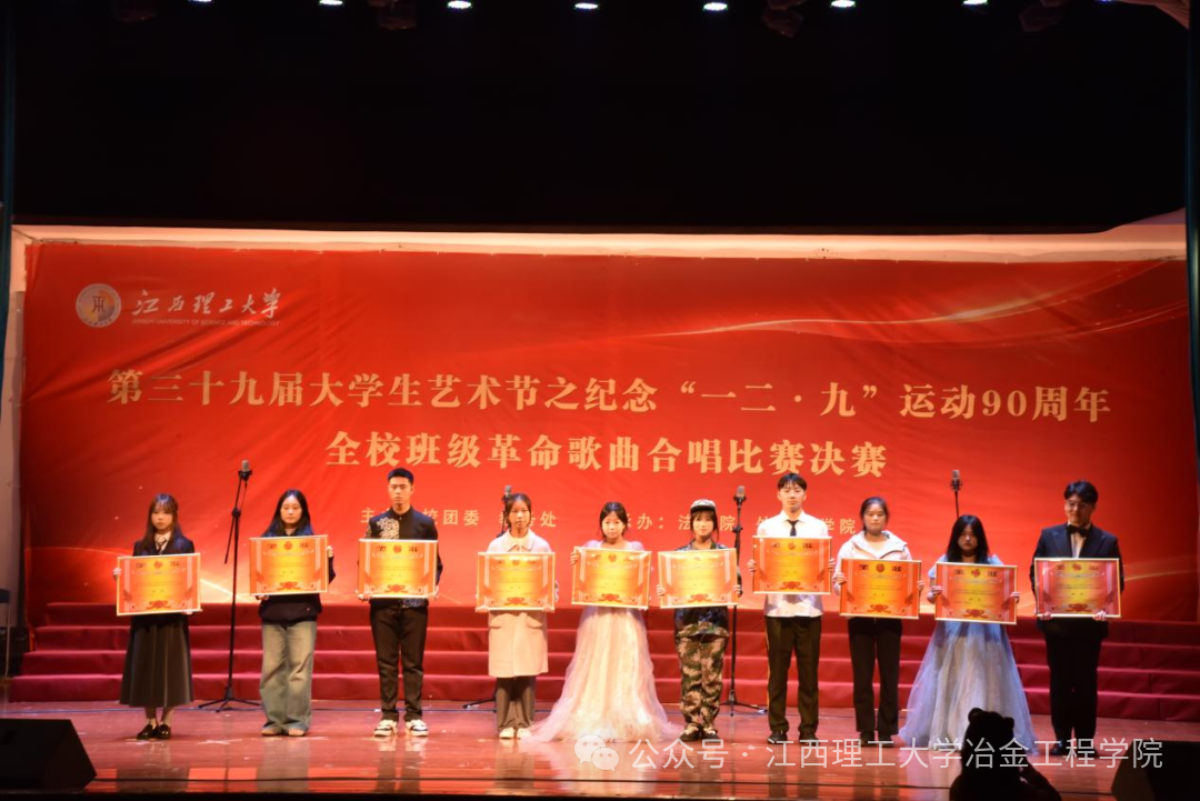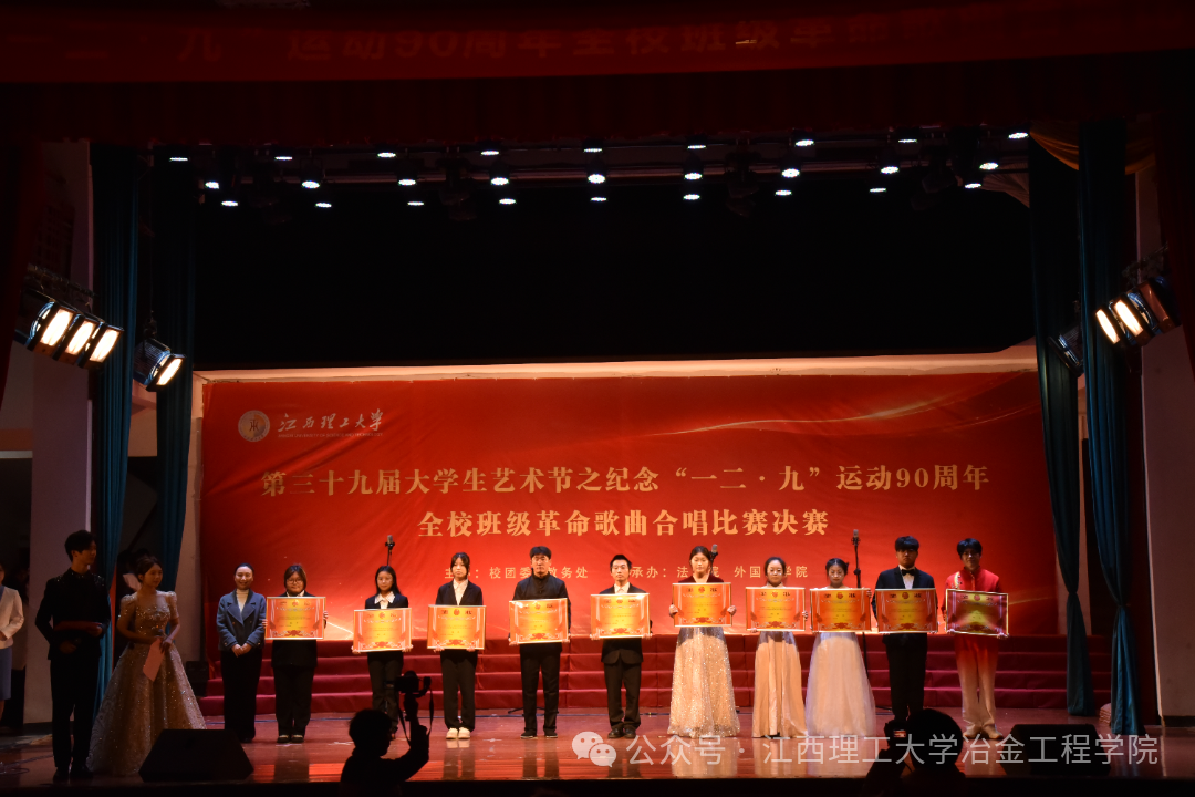 本网讯 12月14日,为纪念一二·九运动90周年,传承红色革命精神,激发同学们的爱国热情,由校团委主办,法学院团委、外国语学院团委承办的第三十八届大学生艺术节之纪念“一二·九”运动89周年全校班级革命歌曲合唱比赛决赛先后于红旗校区大礼堂顺利举行。我们冶金工程学院新生组与老生组凭借出色表现双双斩获三等奖,用歌声传承红色精神,展现青春风采。