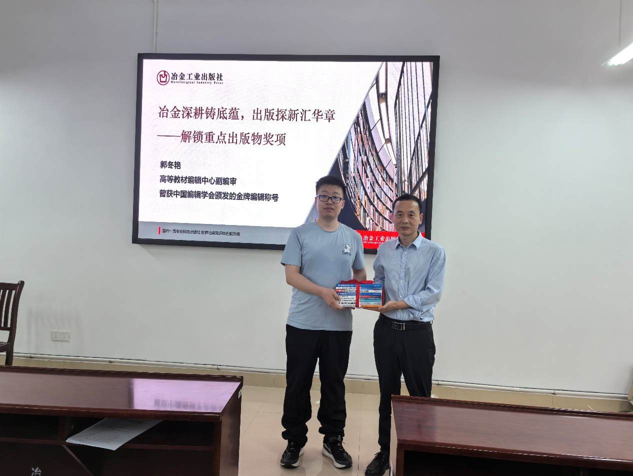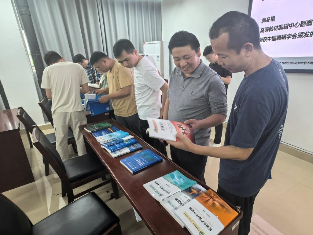活动现场,出版社团队围绕教材出版、以及规划教材和教材奖申报等做了介绍,并集中展示了近年来出版的冶金类精品教材、国家级及省部级规划教材、新形态教材、学术专著,以及金石熔知——1538℃知识服务平台”数字资源。双方围绕学部有色金属冶金、稀土冶金等优势学科,聚焦绿色冶金、智能冶金等科研热点,深入交流教材出版、选用现状、教学改革需求及学术成果转化规划,出版社向学部捐赠了一批优质教材。